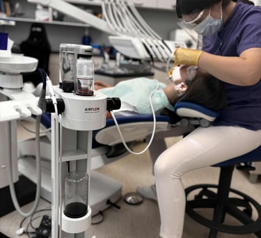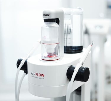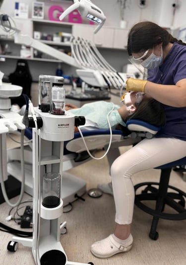 Dentálna hygienička pracuje s najnovším a najmodernejším prístrojom EMS AIR-FLOW.